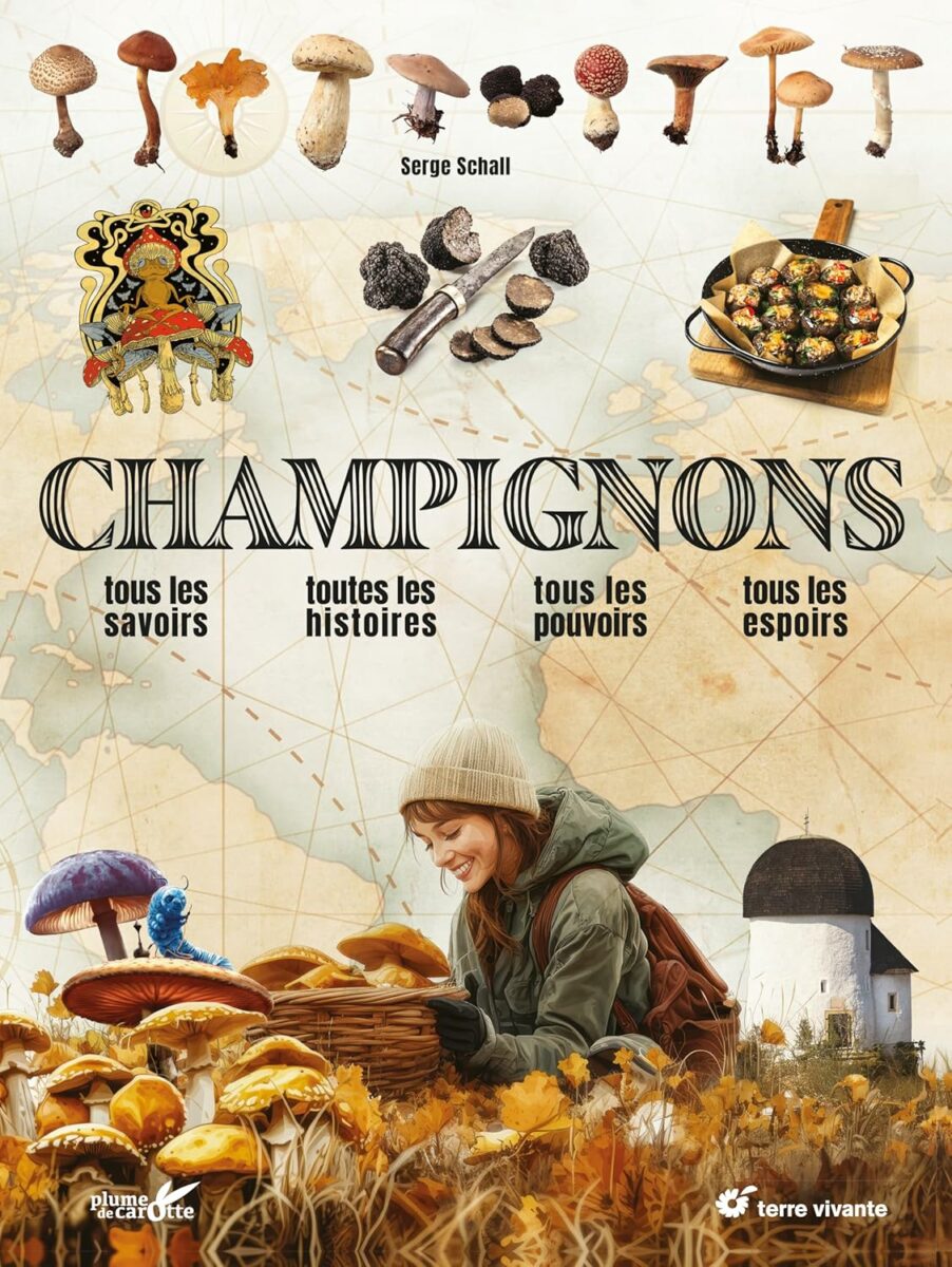 Champignons: Tous les savoirs, toutes les histoires, tous les pouvoirs, tous les espoirs… de Serge Schall Éd.TERRE VIVANTE 2025. 24.7 x 2.3 x 32.7 cm. 176p. 27€. ISBN 2386760006